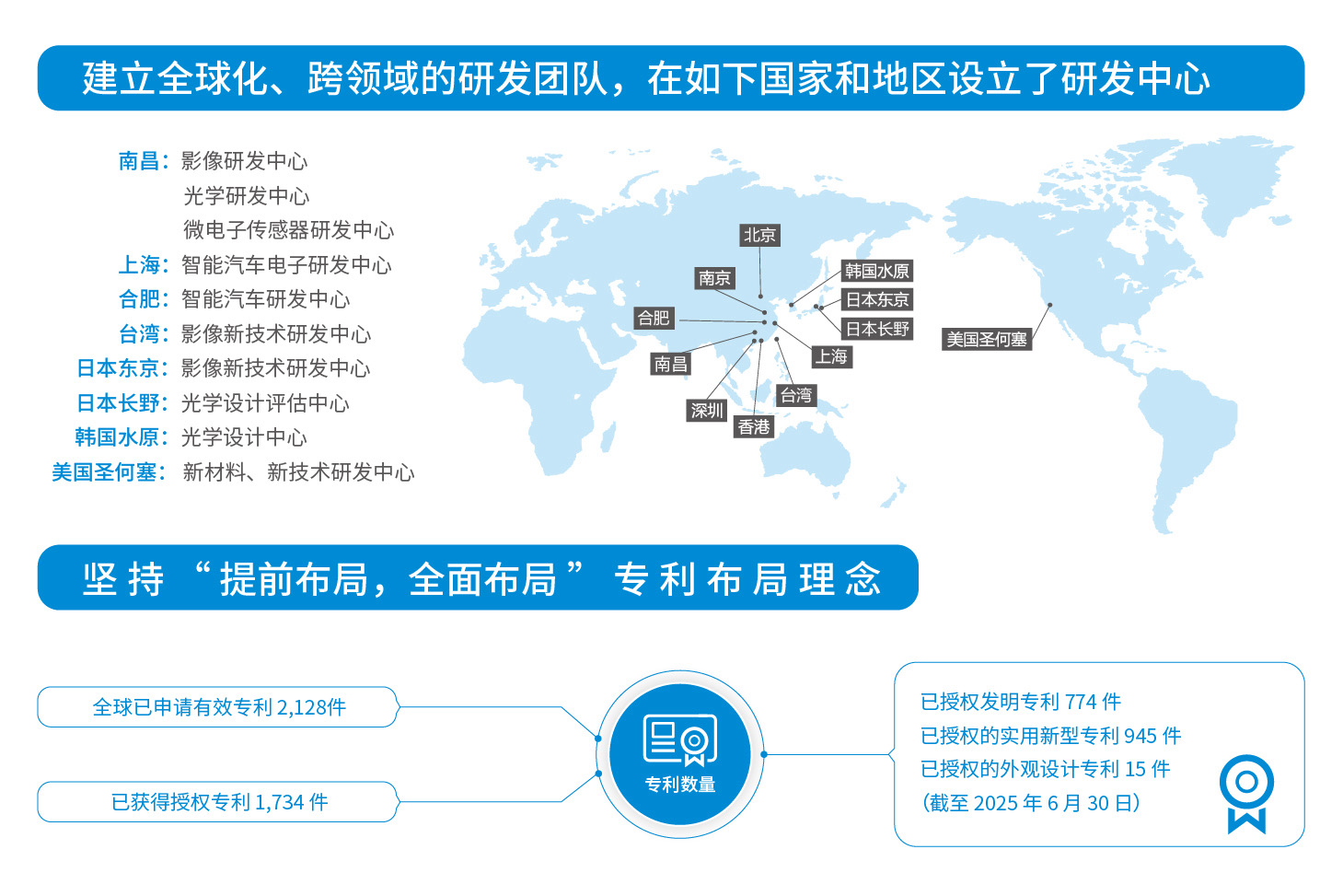 “提前布局,全面布局”是球友会专利的布局理念,布局领域涉及智能手机、智能汽车和新领域等。 截至 2025 年 6 月 30 日,公司在全球已申请有效专利 2,128件,已获得授权专利 1,734 件。其中,授权发明专利 774 件,已授权的实用新型专利 945 件,已授权的外观设计专利 15 件。